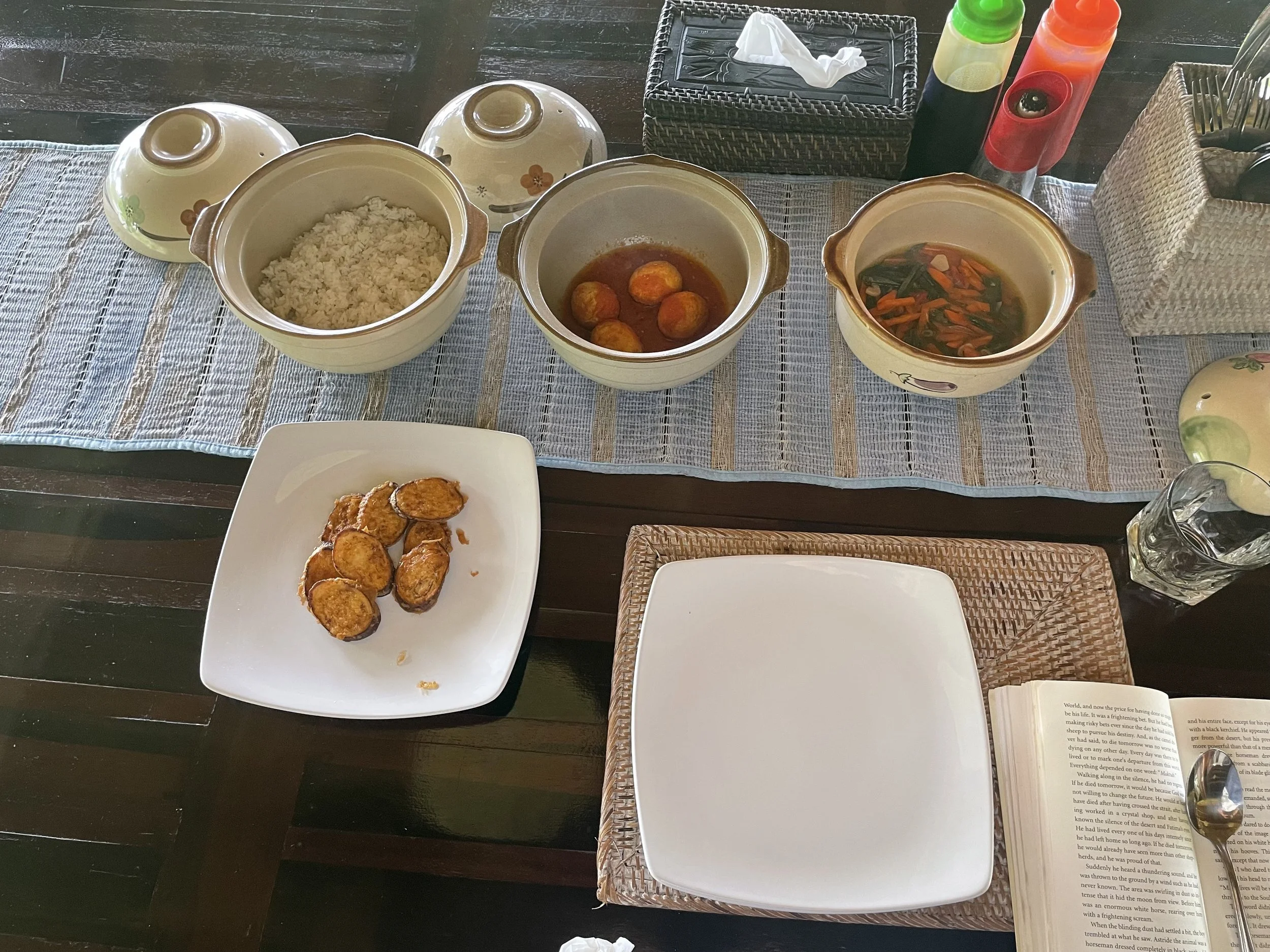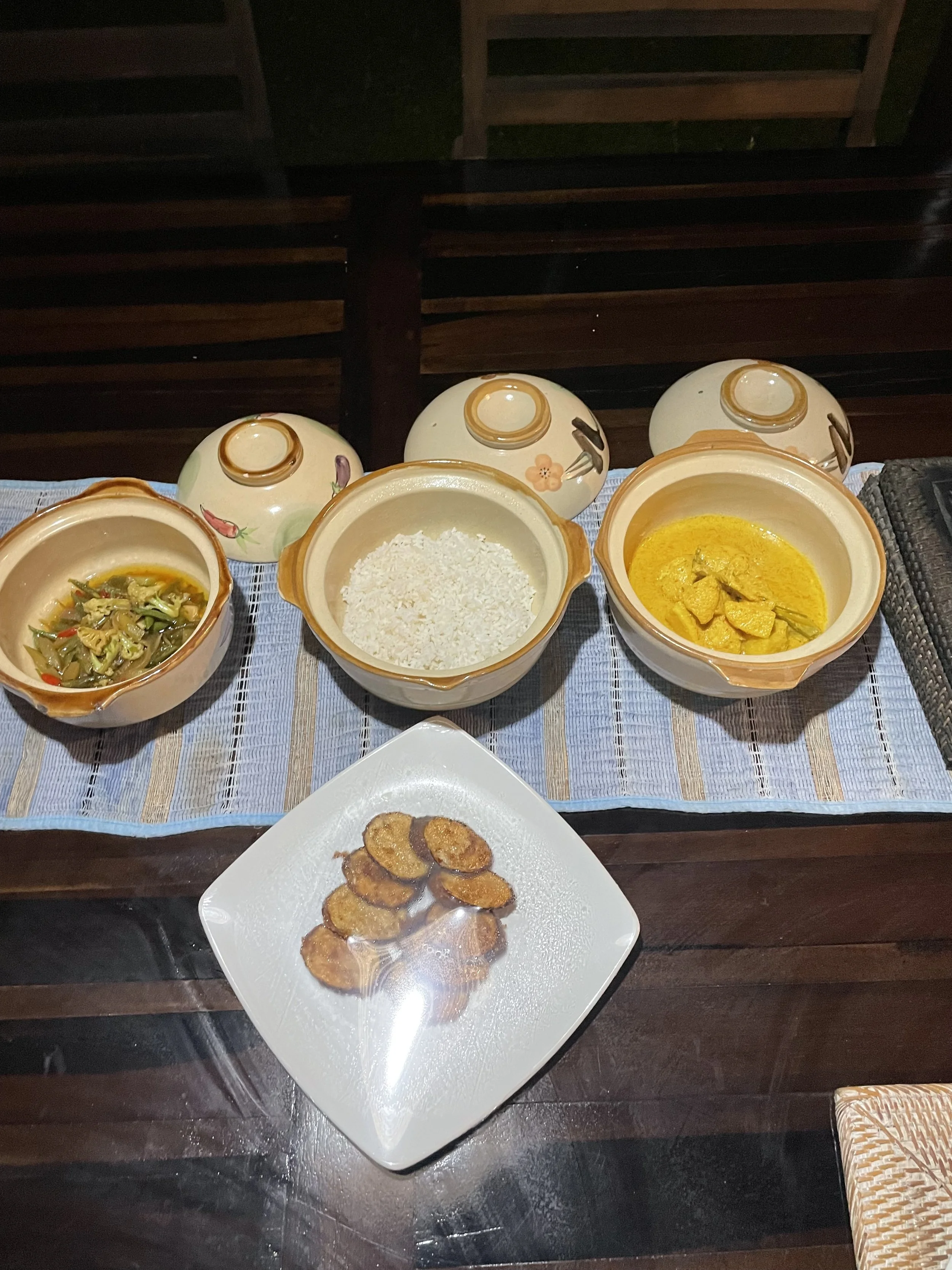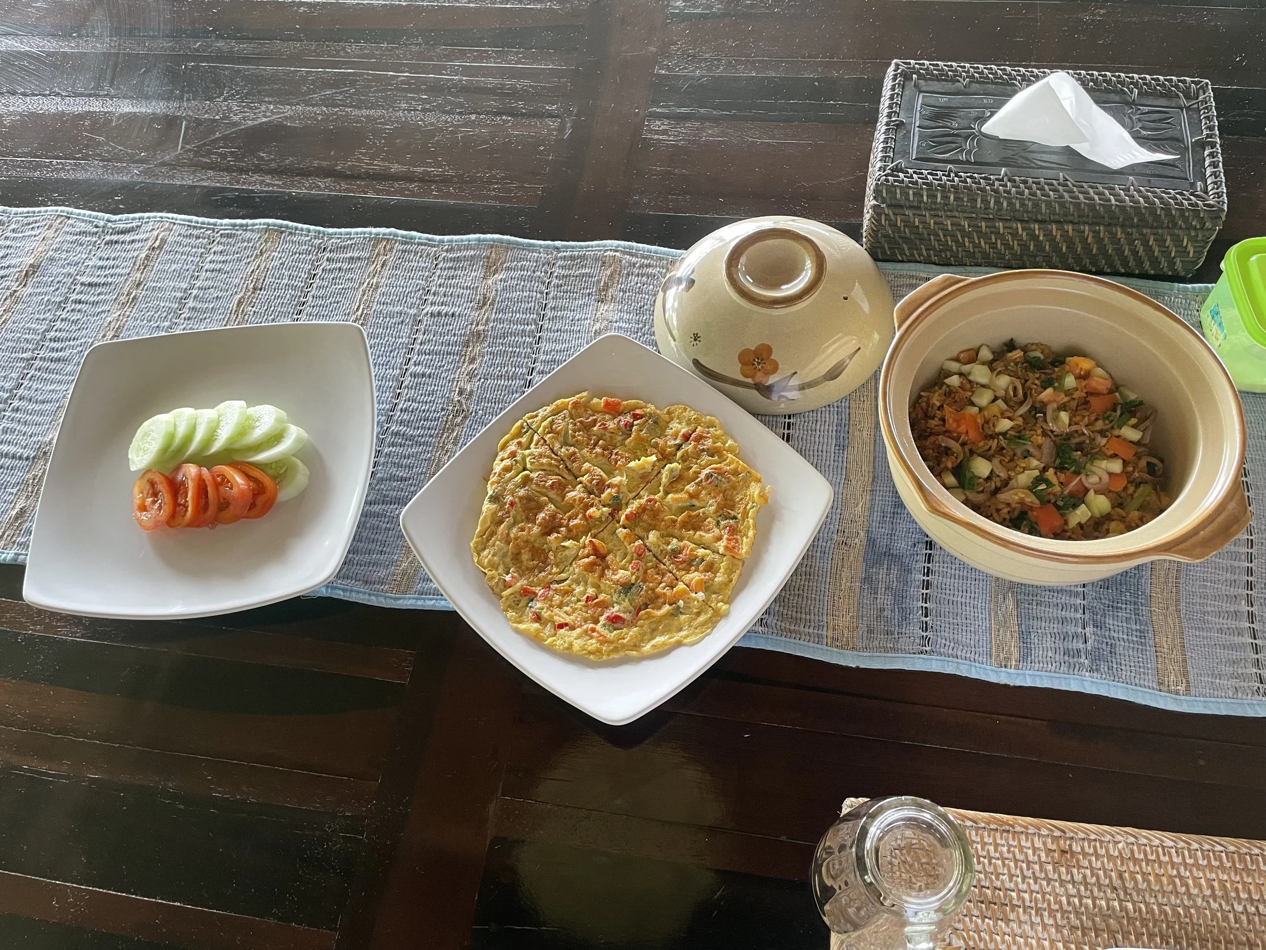Food is prepared three times a day in “The Cafe”. Work with Roz to organize times that suit you each day depending on your activities. The food is generally Indonesian inspired and always delicious.